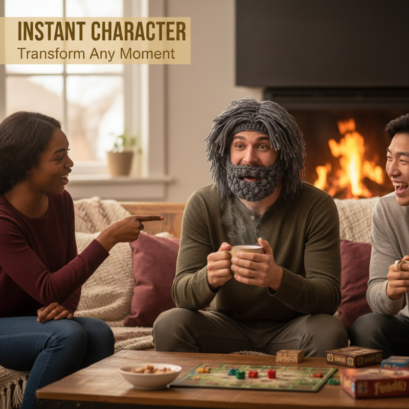 UNIK DESIGN - Stick ut från mängden med denna iögonfallande mössa med grottmansperuk och skägg. Den är en perfekt konversationsstartare och ger en rolig, vild touch till din vintergarderob.