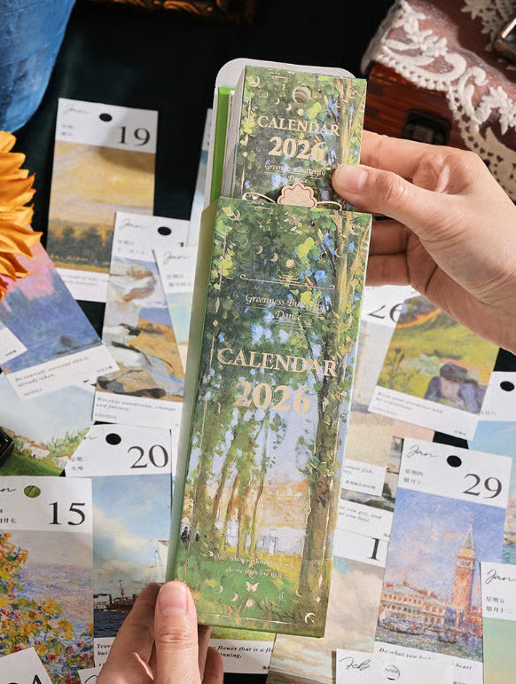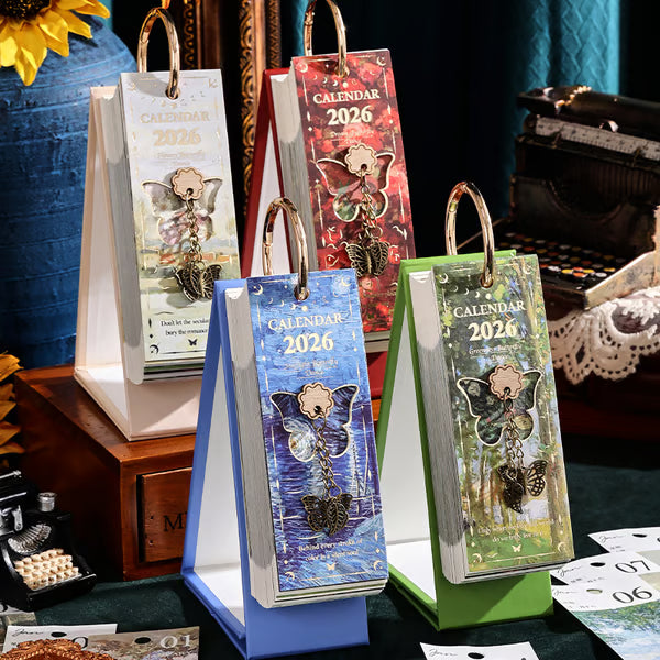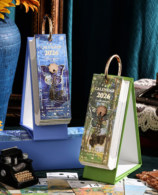 FörĂ€ndra din vardag med denna vackert designade flipkalender för 2026. Den Ă€r inspirerad av vintage europeiska oljemĂ„lningar och ger ditt skrivbord eller din arbetsplats en tidlös touch av elegans. Varje sida Ă€r ett konstverk â kompletterat med en charmig fjĂ€rilsberlock för en extra touch av sofistikation.