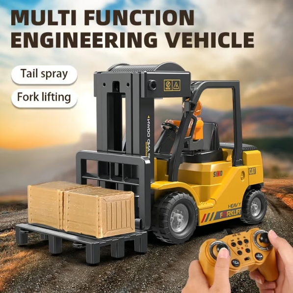 11-kanals fjärrkontroll gaffeltruck: Fjärrkontroll gaffeltruck kan köra framåt och bakåt, svänga vänster och höger, lyfta och sänka pallen, samt har ljus, ljud, sprayfunktion och en enda knappdemo.