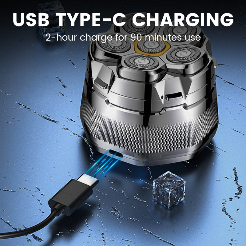 SIX-BLADE PRECISION SHAVE - Denna rakhyvel är speciellt utformad för rakning av huvudet och har sex ultraskarpa blad som arbetar tillsammans för att fånga varje hårstrå i ett enda, smidigt drag, vilket möjliggör en snabb och bekväm rakning utan att missa några ställen.