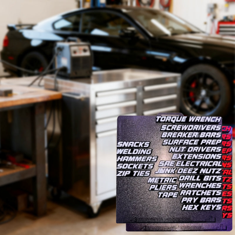 MĂ NGSIDIGT MĂRKNINGSSYSTEM â Den omfattande uppsĂ€ttningen innehĂ„ller etiketter för alla vanliga verktygskategorier, frĂ„n skiftnycklar och hylsor till skruvmejslar. Organisera hela din verktygssamling för en perfekt ordnad och funktionell arbetsplats.