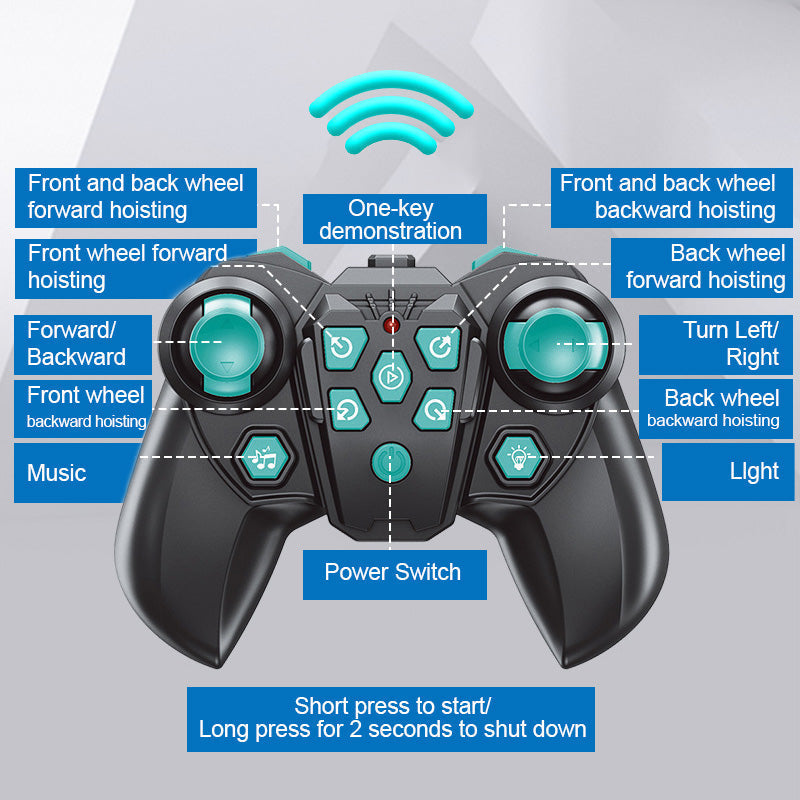 - Exklusiva stunts: 360° snurr (fullt varv) och drifting (sidorleende körning) med en knapp.